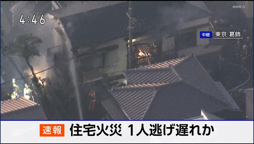 午後4時すぎ、葛飾区小菅にある2階建ての住宅で「火事です」と110番通報がありました。警視庁などによりますと、2階建ての住宅の1階と2階部分から火がでました。ポンプ車など26台が出動し現在も消火活動が続いています。この火事で少なくとも2人が逃げ遅れていることで警視庁と東京消防庁が確認を急いでいます。