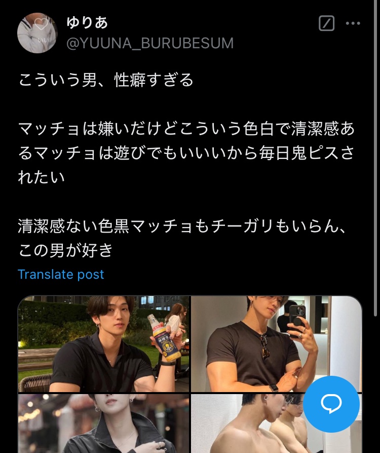 【画像】Twitter女性「マッチョ嫌いだけど、こういう色白清潔感マッチョとは毎日したい」1万いいね 2024/12/18 速報 1: https://imgur.com/YFy3rWJ.jpg document.write(” + ”); 関連記事 document.write(” + ”); 続きを読む ——— Source: アルファルファモザイク 【画像】Twitter女性「マッチョ嫌いだけど、こういう色白清潔感マッチョとは毎日したい」1万いいね