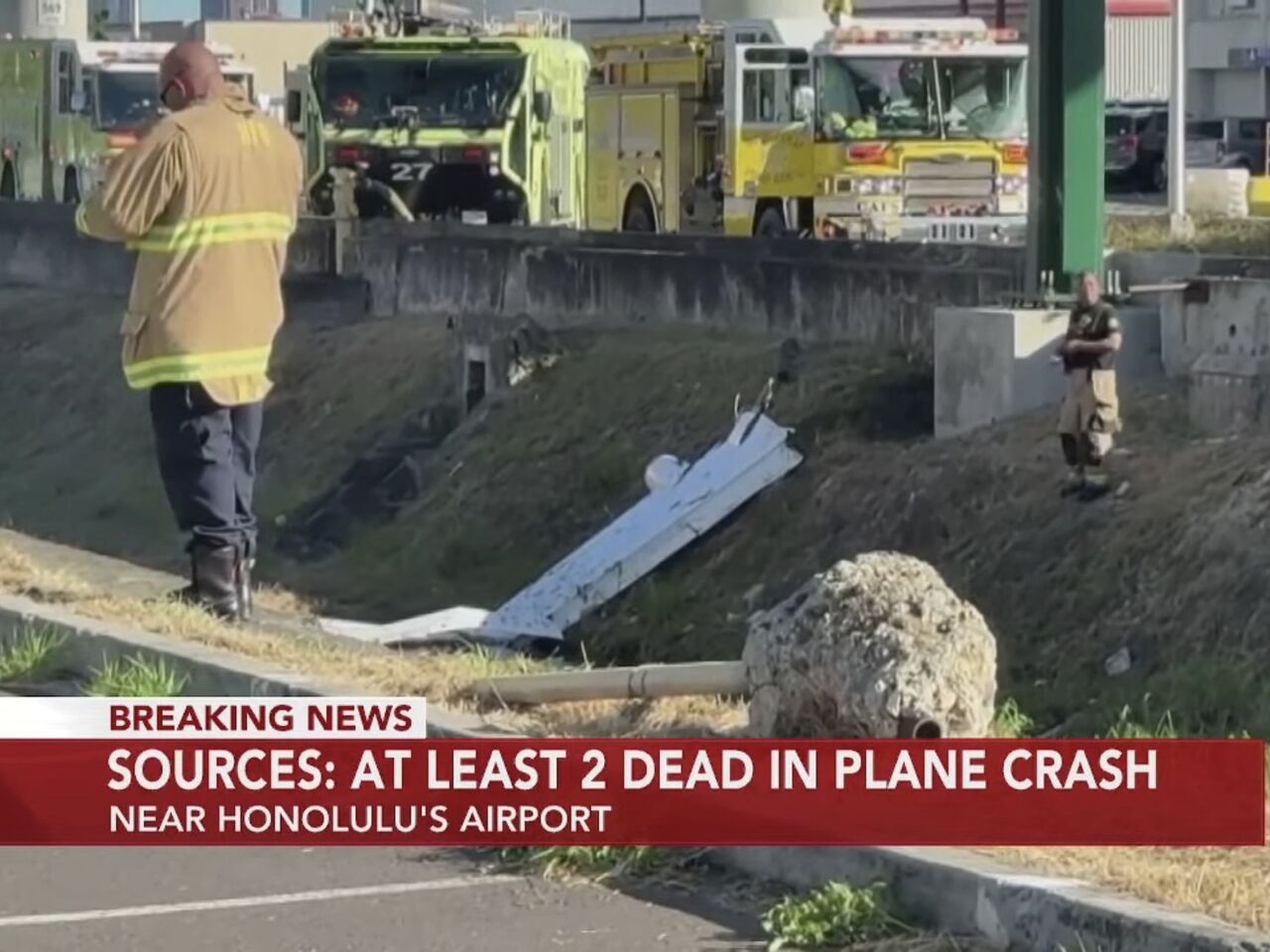 『ホノルル空港付近で飛行機が墜落しました。情報筋によると、2人が死亡しました。この飛行機はカマカ航空の飛行機だったことが分かっています。』
