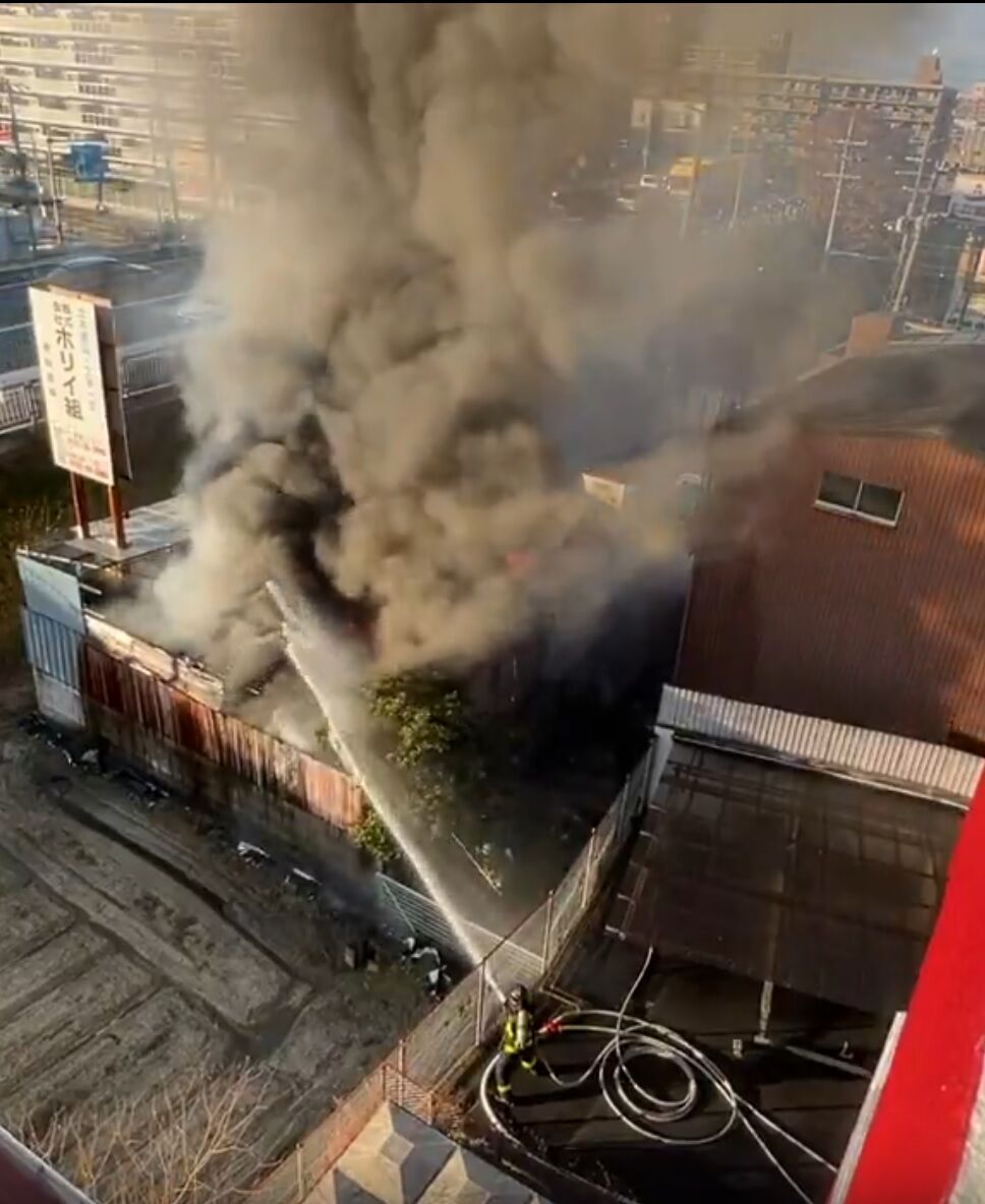 【火事情報】大阪府松原市上田4丁目 国道309号線沿い付近 資材置き場建物から黒煙あがる火災12月18日 #大阪 #松原 #火災 #師走 #年末