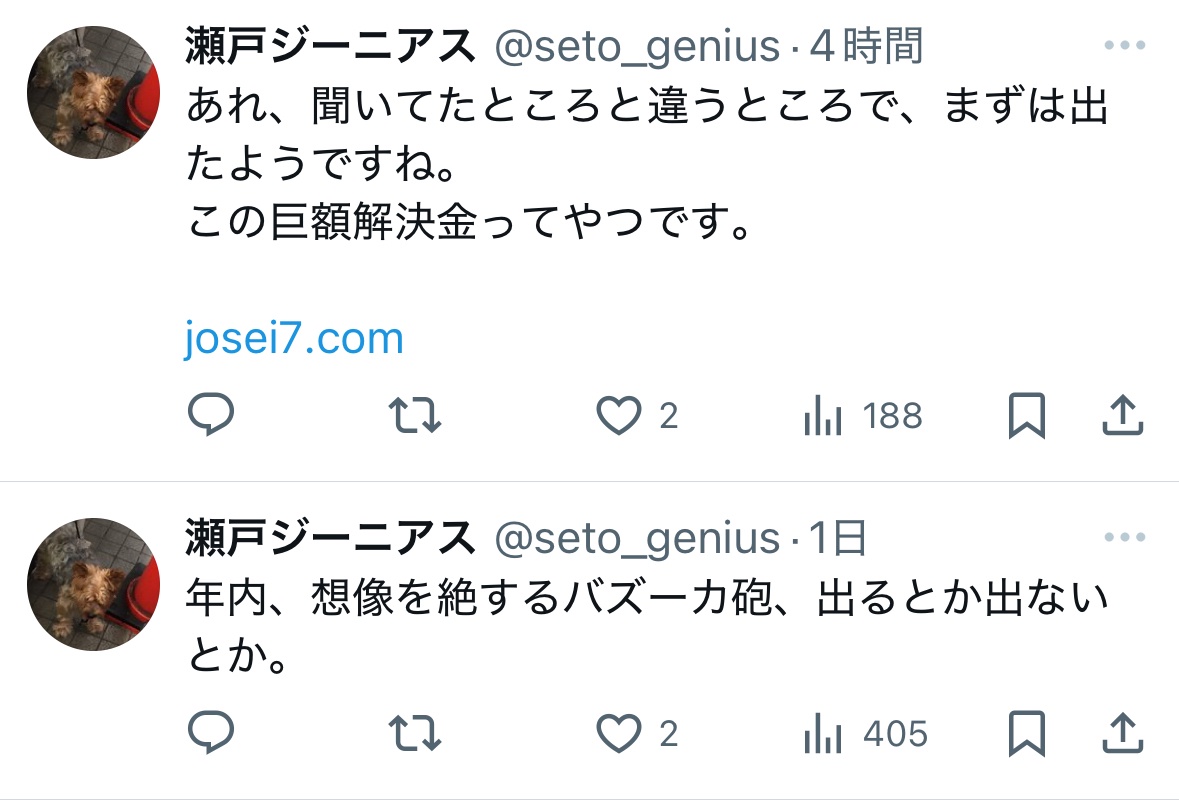 【伏線回収】中居正広さん、こういう事だった 2024/12/19 速報 130: 一時期病気だかなんだかで休んでたのってまさか これ関連だったのか? 結局病名も言わなかったよなたしか document.write(” + ”); 関連記事 document.write(” + ”); 続きを読む ——— Source: アルファルファモザイク 【伏線回収】中居正広さん、こういう事だった