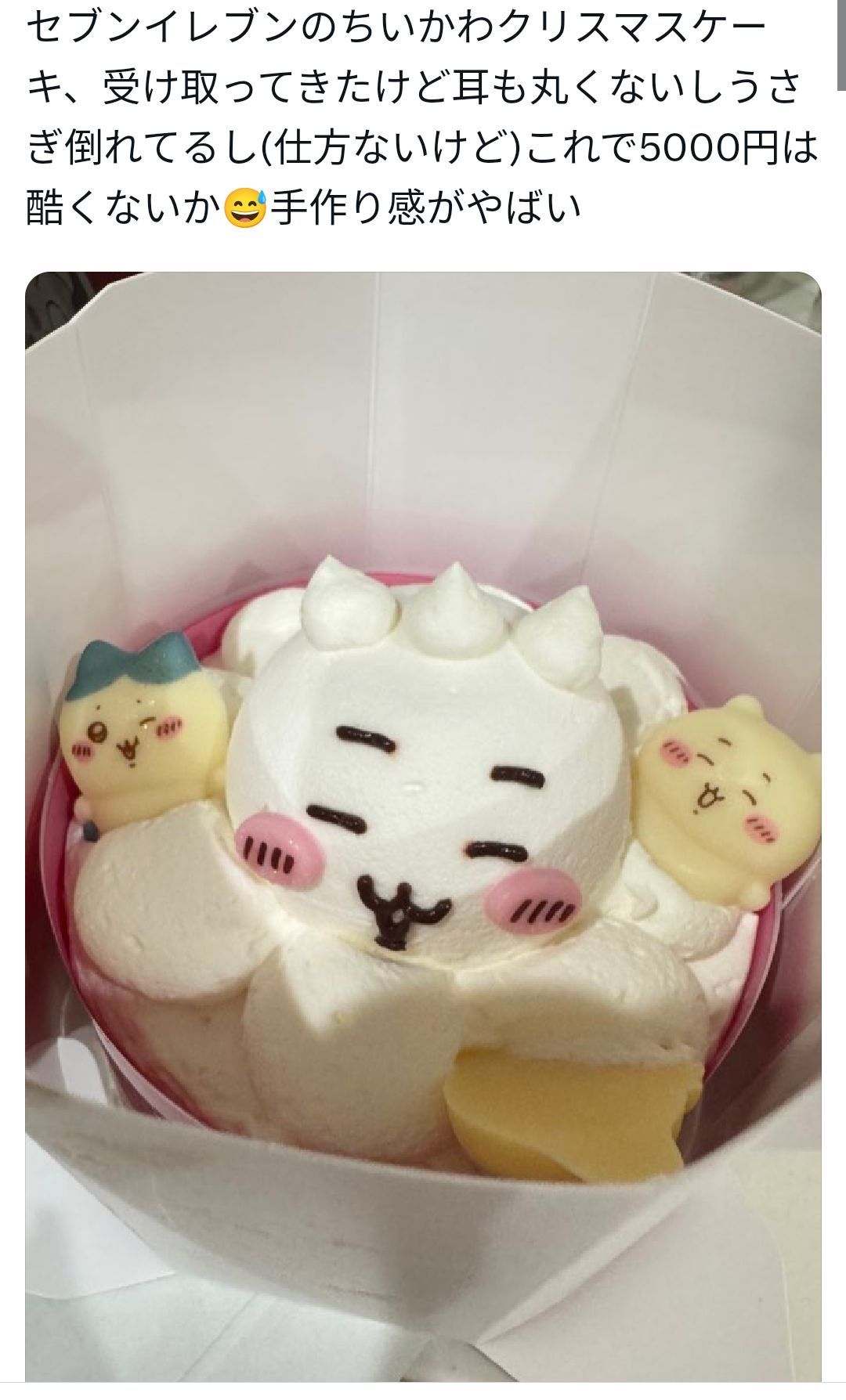 【公開処刑】セブンのちいかわケーキ(¥5000)の“理想と現実”をご覧ください 2024/12/22 速報 1: これが5000円かぁ 理想 現実 — (@chllKa) document.write(” + ”); 関連記事 document.write(” + ”); 続きを読む ——— Source: アルファルファモザイク 【公開処刑】セブンのちいかわケーキ(¥5000)の“理想と現実”をご覧ください