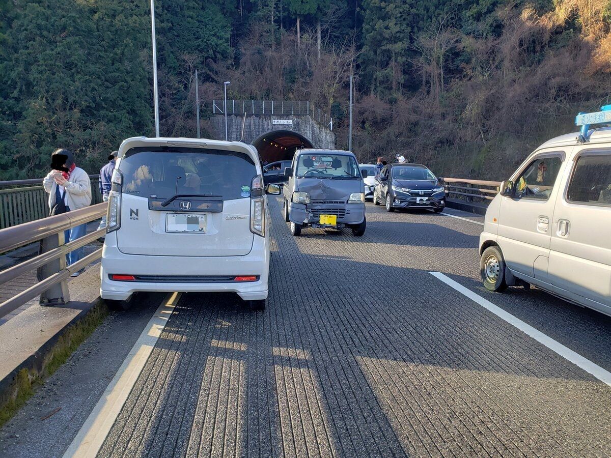 『愛知県北設楽郡東栄町三輪の海老島大橋上で多重衝突事故が発生してます』