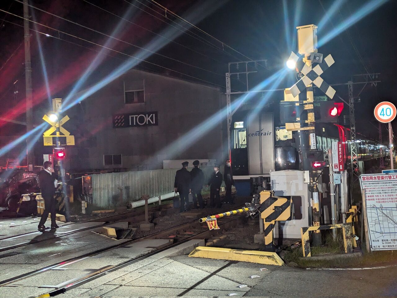 名鉄名古屋本線 新清洲駅〜大里駅の間の踏切で踏切事故。自動車と衝突。清須市か稲沢市か不明。2024/12/22日曜夜 夜遅いためJR東海道線の振替輸送はない。#名鉄自分用