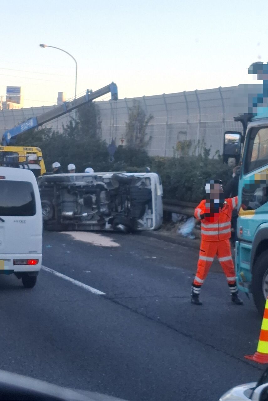 東名上り、軽トラ横転しててさすがに笑っちゃった