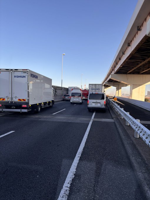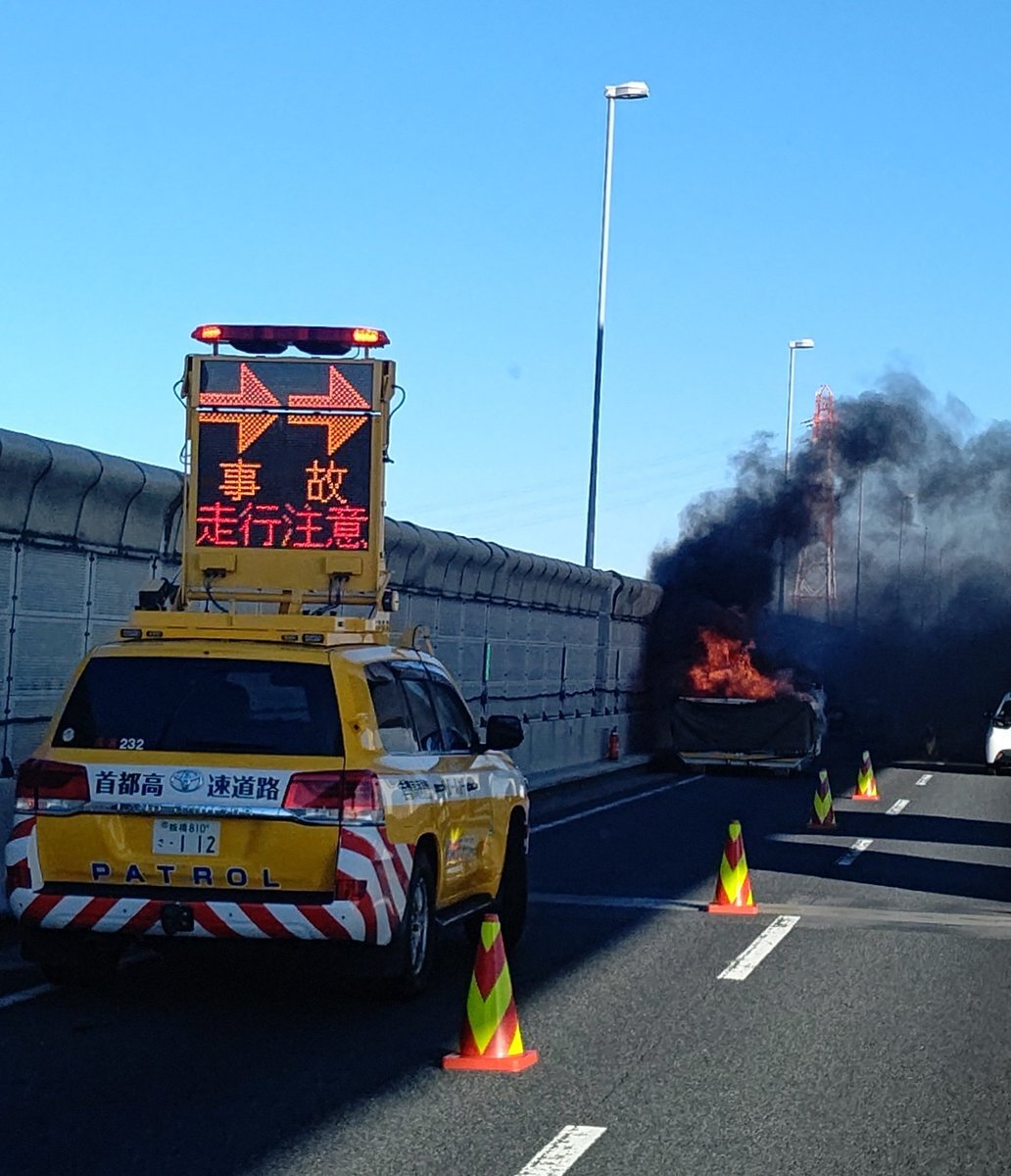 【現場の様子】#交通情報 #首都高 C2中央環状線 外回り 江北JCT→千住新橋付近 トラック燃える車両火災事故で一時通行止め渋滞12月24日 #渋滞 #火災 #足立区 #クリスマス