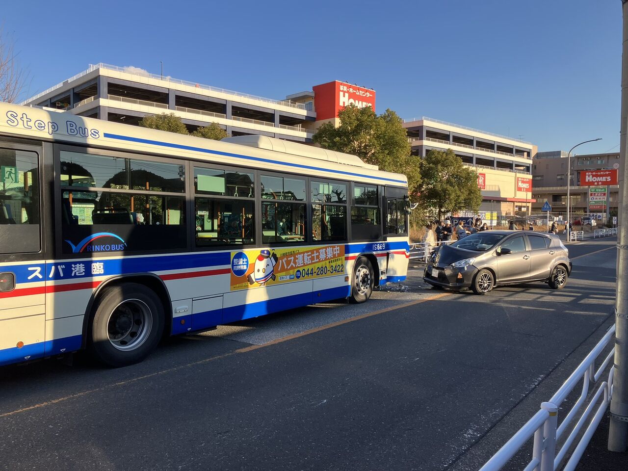 【現場の様子】#交通情報 神奈川県横浜市鶴見区江ケ崎町 島忠ホームズ新川崎店付近 臨港バスと乗用車の衝突事故で一部交通規制12月24日 #バス #横浜 #鶴見 #川崎 #クリスマス