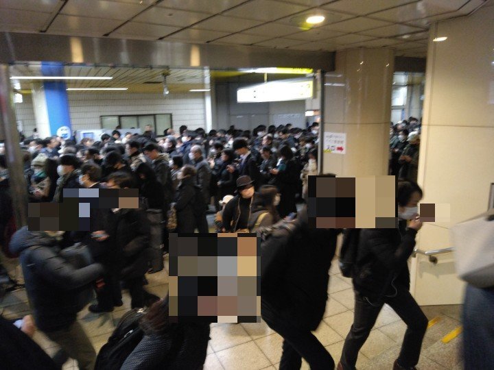 改札前にすごい数の人がいる』