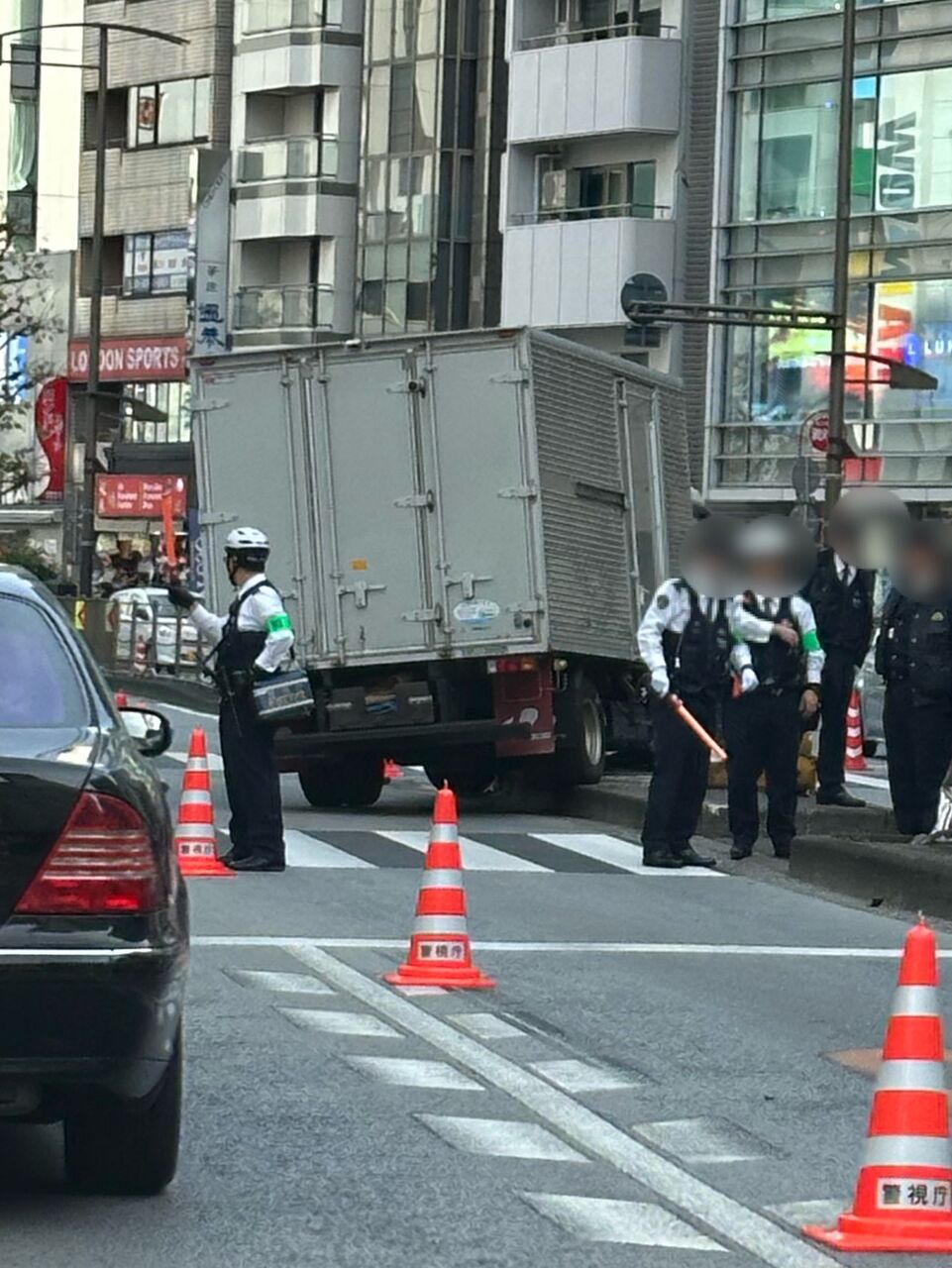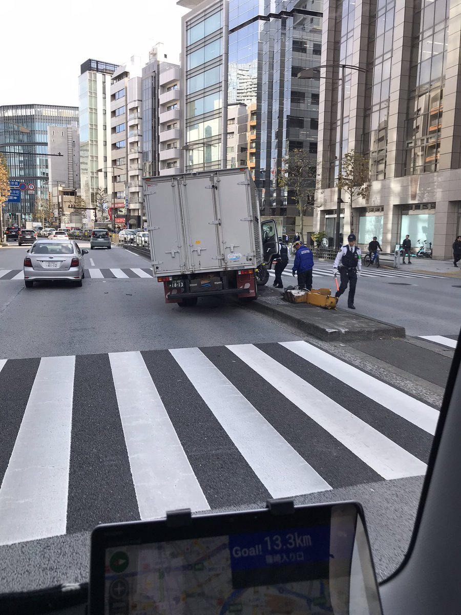 『靖国通りの小川町あたりで、トラックが中央分離帯に突っ込んでたぞ!居眠り? 病気? スピード出し過ぎ?』