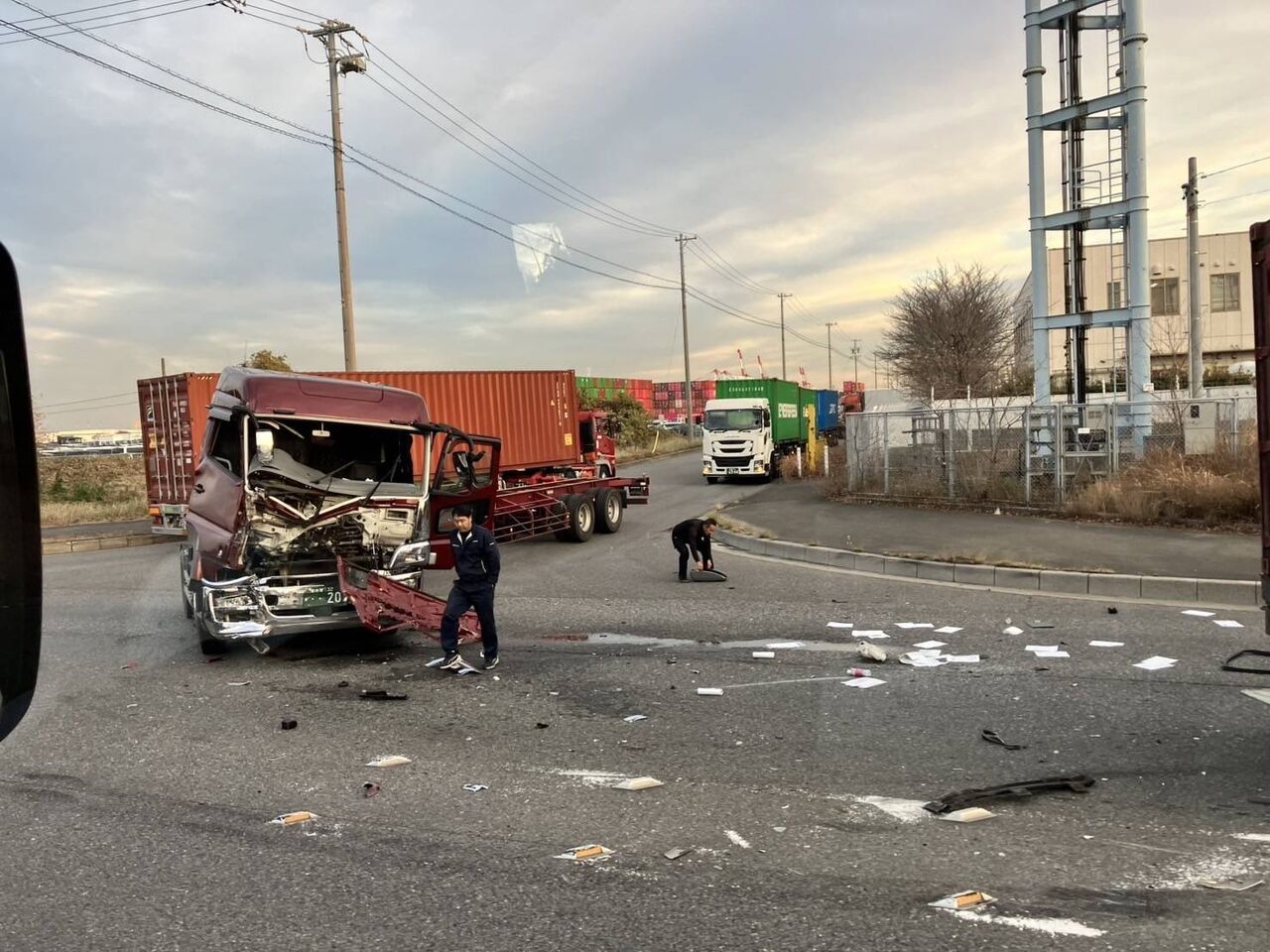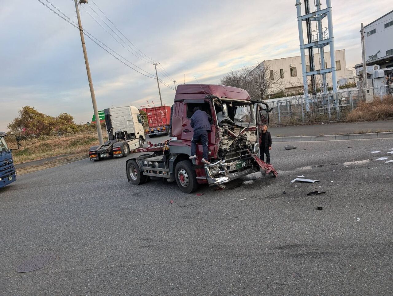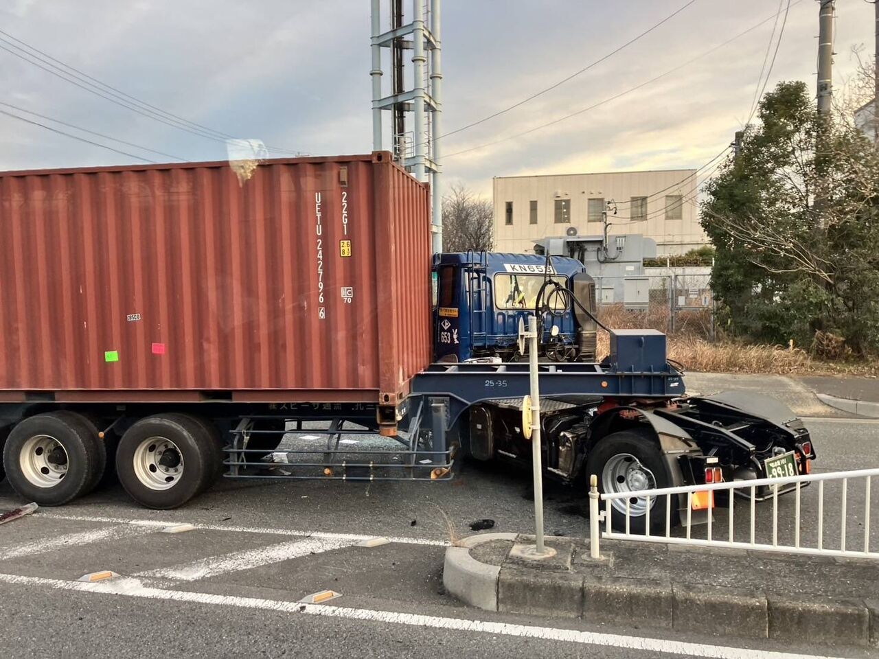 【現場の様子】#交通情報 愛知県弥富市富浜2丁目付近 大型トレーラ大破事故で一部交通規制12月25日 #愛知 #弥富 #クリスマス