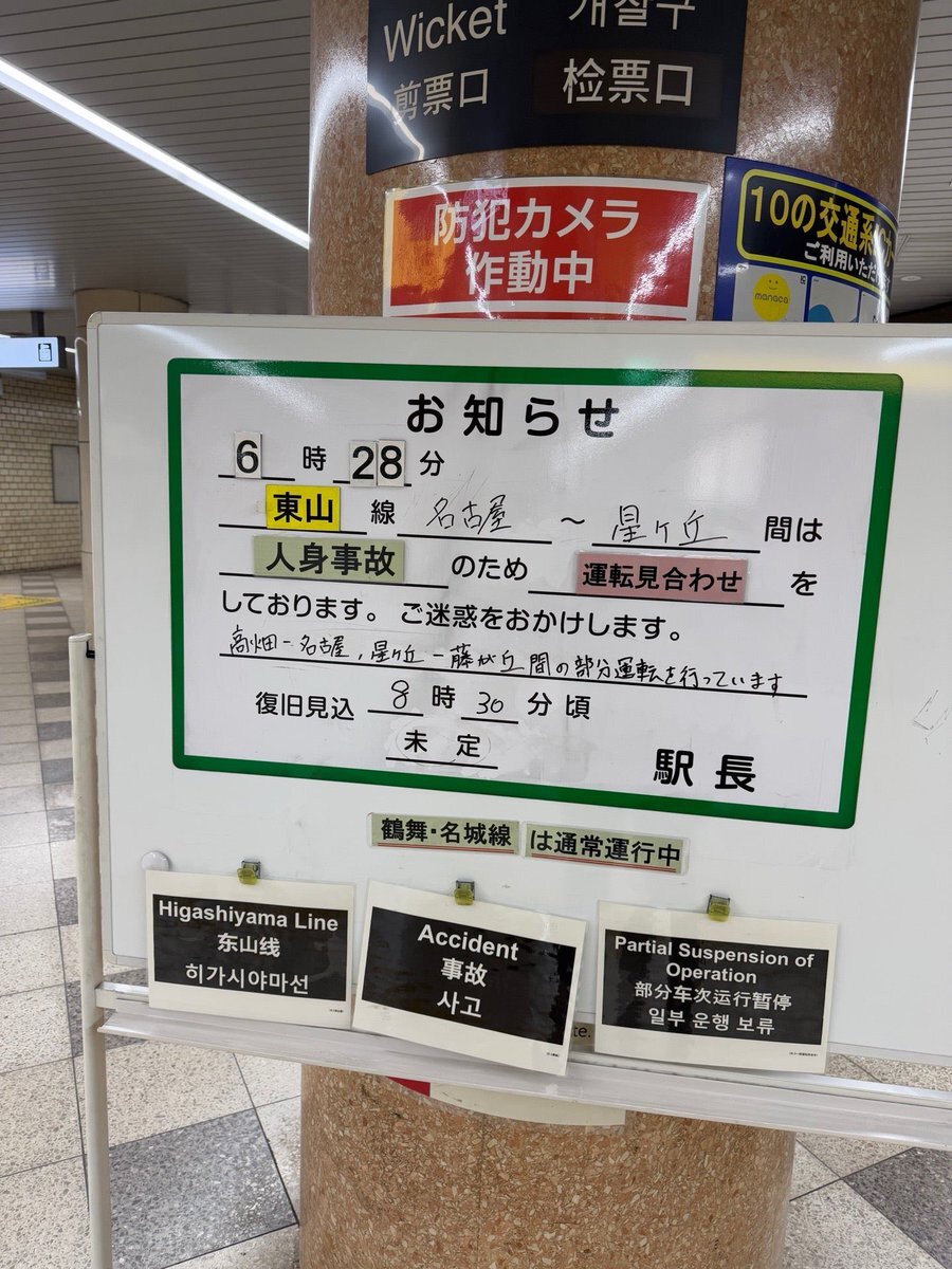 東山線で人身事故😳