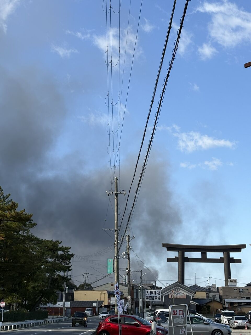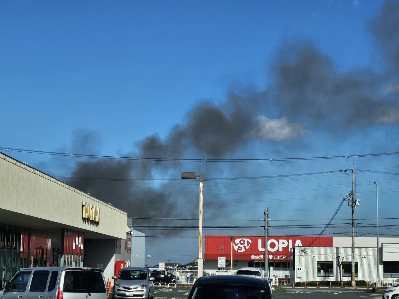 TSUTAYAの向こう側で火事です🔥すっごい黒い煙とウーカンカン🚒💨