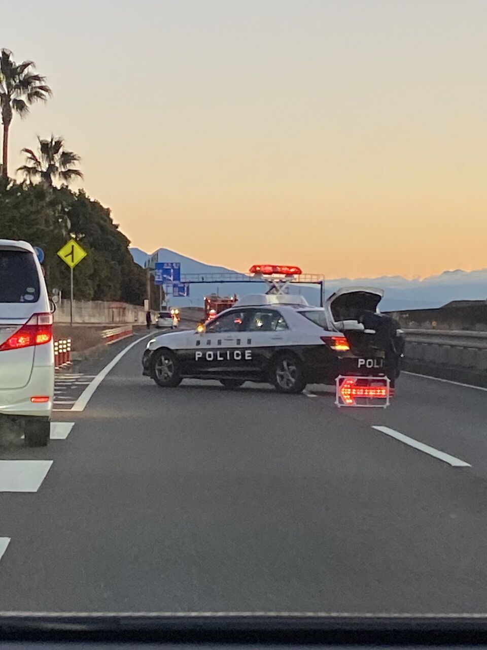 上り 興津で通行止め全く動かん