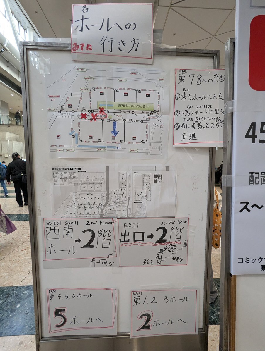 #C105 東2、外から急に人が入り始めた。西からの流入だとか?一時的な列移動は仕方ないけど、通路一方通行にするなら一時的な対応か、最初からルールにしてほしいかな