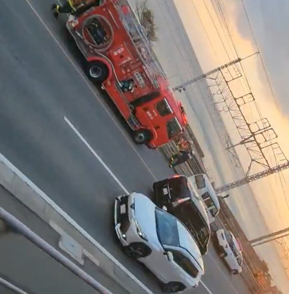 『須磨駅すぎたとこでJRの電車燃えてたが』