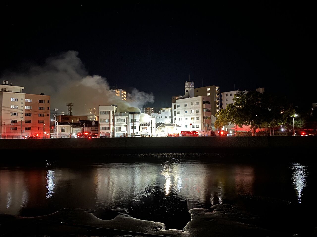 ◆消防車の出動についてお知らせします。01月02日01時43分西区 天満町付近で建物火災第1出動を指令し、消防車が出動しています。
