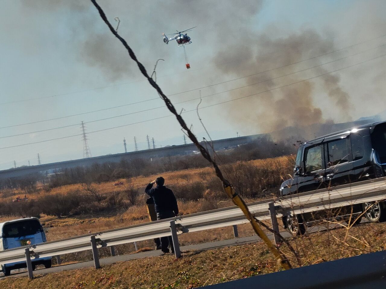 友達を駅に送り、洗車して帰宅中に鬼怒川 河川敷枯草火災が広範囲に広がり大火事になっていた。 pic.twitter.com/MrlRPqh9QL