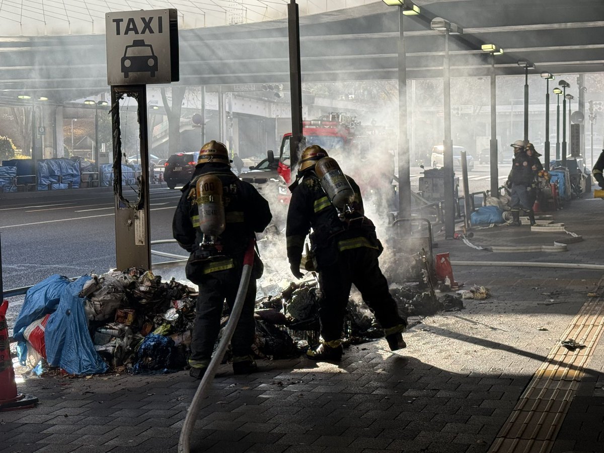 【火事情報】東京都新宿区西新宿2丁目 東京都庁タクシー乗り場付近 ホームレスハウス燃える火災1月2日 #新宿 #西新宿 #都庁 #火災 #お正月