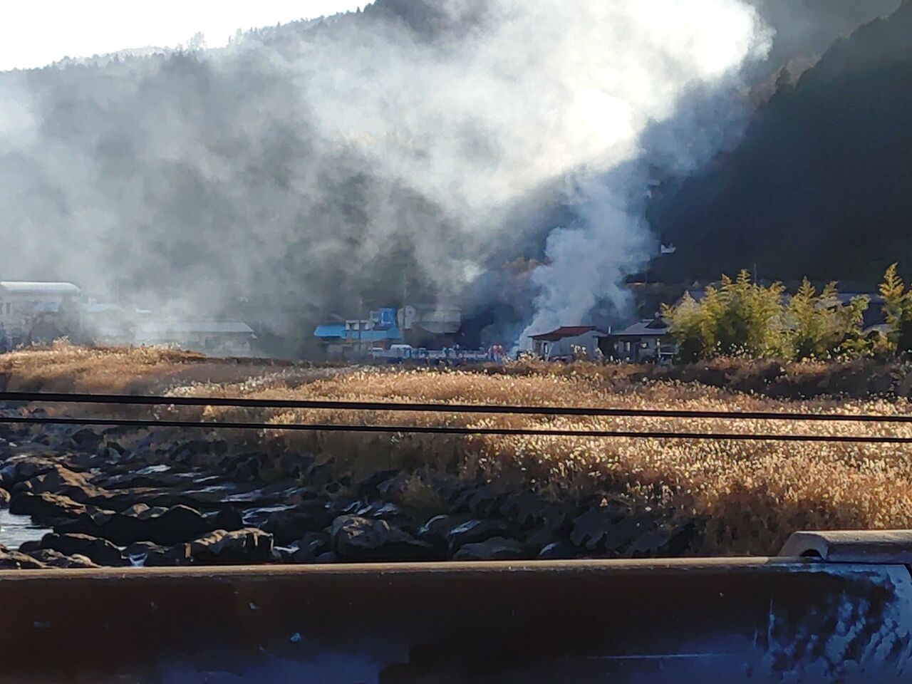 【火事情報】大分県玖珠郡九重町粟野 大分銀行ここのえ支店北側付近 道路沿い建物から煙あがる火災 周辺道路一時交通規制1月2日 #大分 #九重町 #火災 #お正月