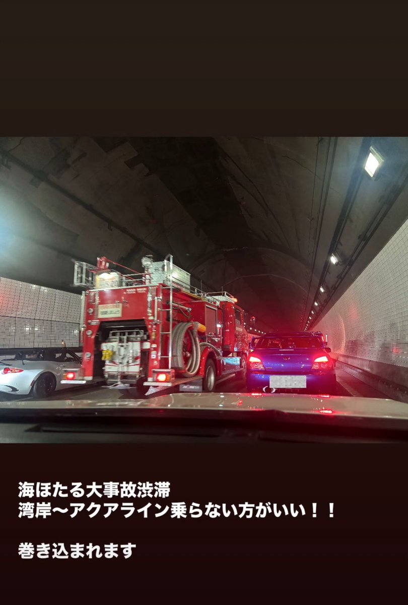 アクアラインが事故のため立ち往生食らって30分が過ぎて、ついに通行止になったけど、トンネル内にいる車をどうするつもり?🤔 pic.twitter.com/U6oGfRZfLU