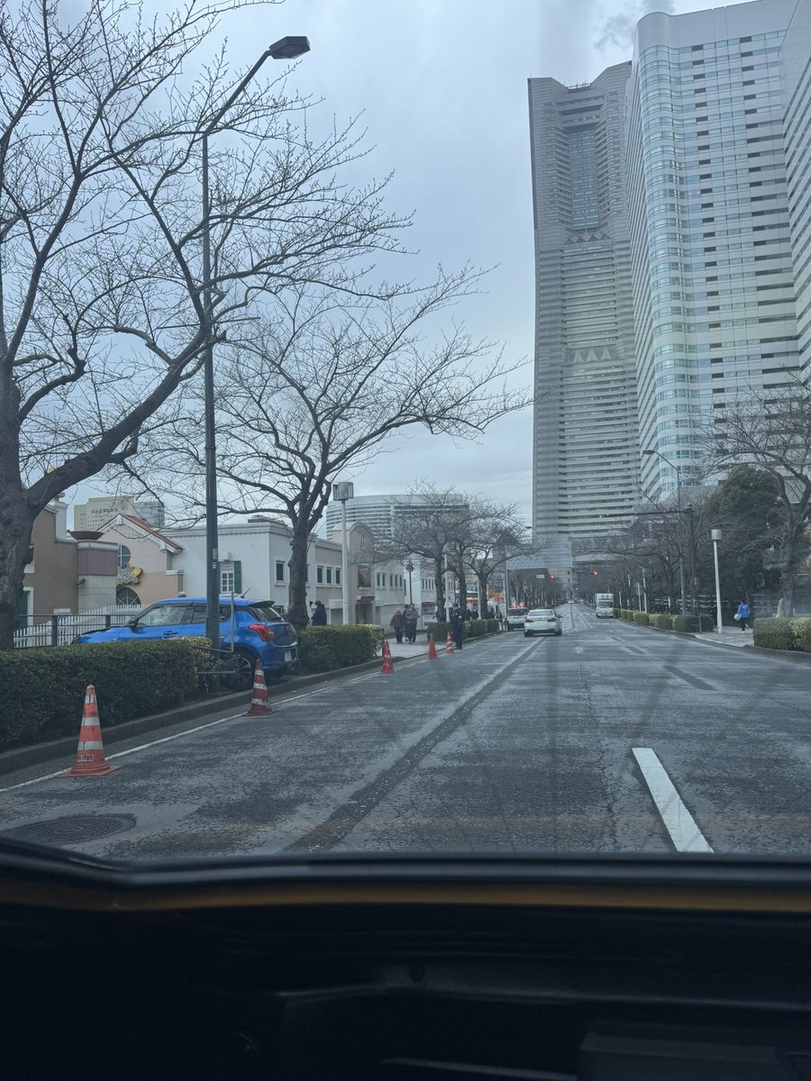 おぉ…みなとみらいのベイホテル東急から出てきた一般車、真っ直ぐ道路横断してコスモワールドの方に突っ込んだらしくて、ガードレールが折れとる😨
