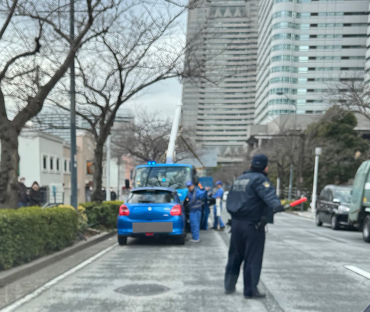 【現場の様子】#交通情報 さくら通り横浜市西区みなとみらい2丁目 コスモワールド付近の歩道に自動車突っ込む事故1月3日 #横浜 #みなとみらい #お正月