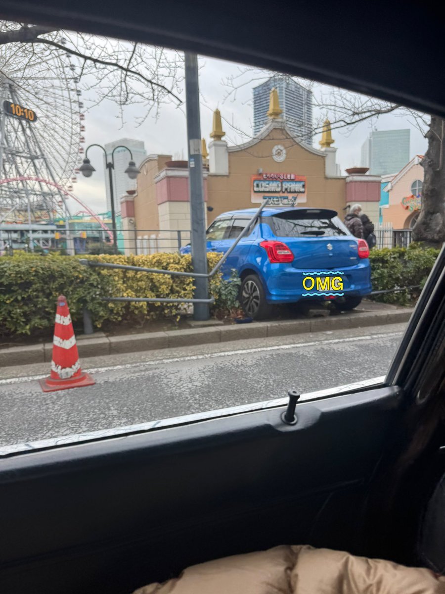 『コスモワールドに車で行きたかったのかな。 それともマリカーみたいにショートカットしようとして失敗?』