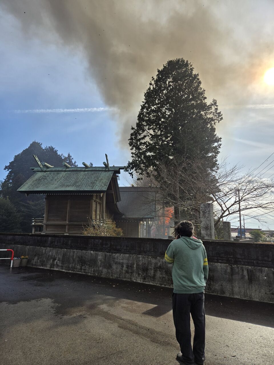 サイレンが鳴り響いてるから何かと思ったら近所で火事が。境内の社務所だか自宅だかが燃えたらしい。乾燥してるし風強いから火事には気をつけないとね…