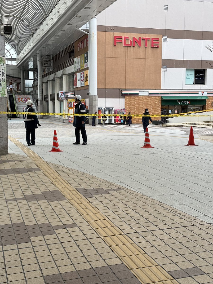 秋田駅のアゴラ広場のあたり警察の規制線で封鎖されてるのどういうこと?