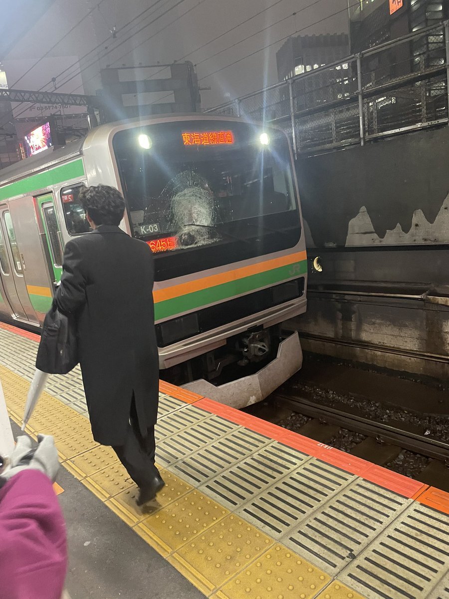 【現場の状況】『列車のフロントガラス破損』#東海道線 新橋駅で人身事故 #山手線 #京浜東北線 など遅延1月6日 #新橋 #仕事始め #新年早々