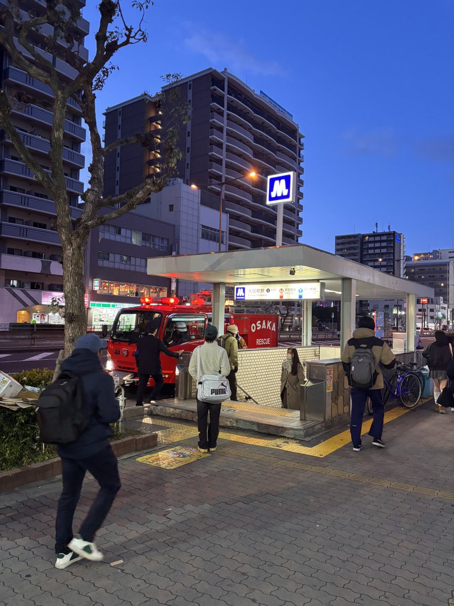 『大国町でしばらく電車動かなさそうやったからなんばまで1駅やし歩くかと思って改札出たら消防車大量に来た。発煙してたんか、全然分からんかったわ』
