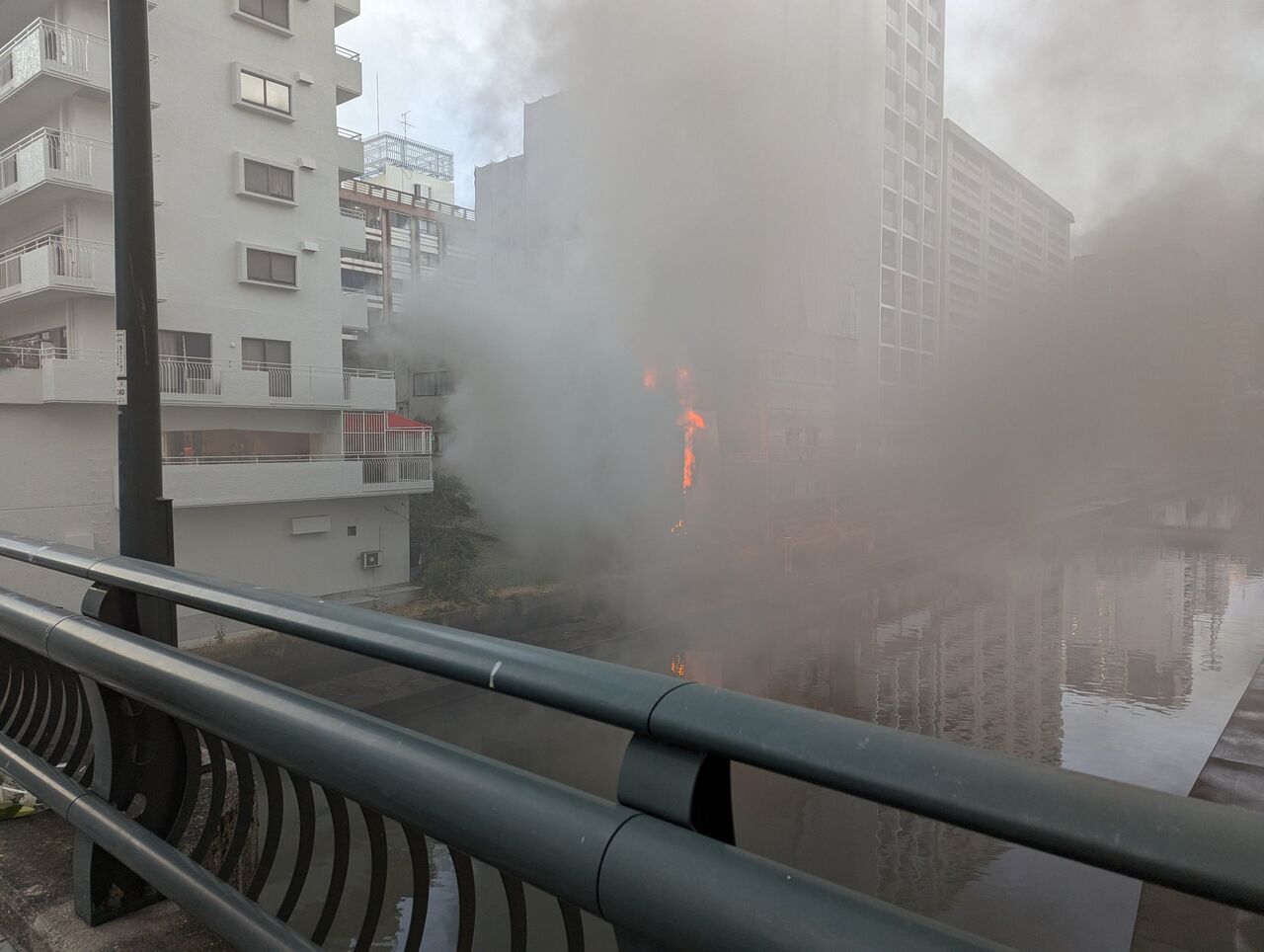 【火事情報】愛知県名古屋市中区大須4丁目 新堀川沿い付近 建物から火の手あがる火災 周辺道路一部交通規制1月7日 #愛知県 #名古屋 #大須 #火災