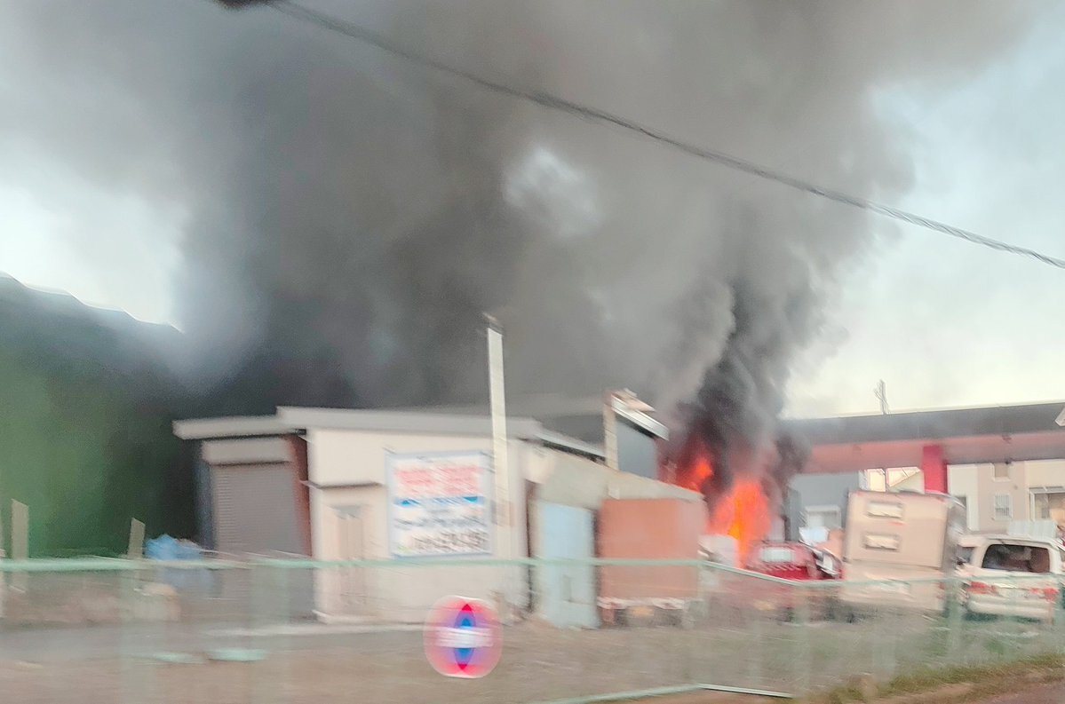 【火事情報】埼玉県入間市宮寺 国道16号線沿い 入間アウトレットコストコ南側 板金塗装店付近 建物から火の手あがる火災 国道16号一時渋滞1月8日 #埼玉 #入間 #火災