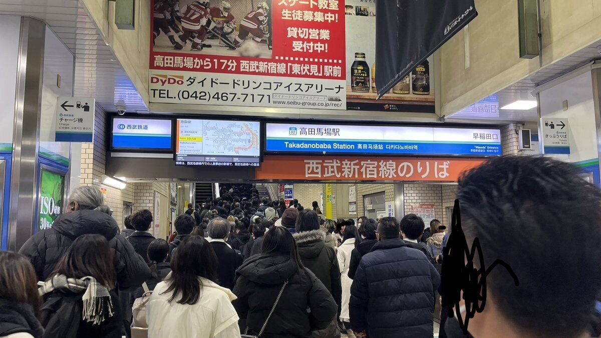 病み上がりで今年初出勤して、フラフラしながら高田馬場まで歩いてきたら、西武新宿線の改札が大渋滞😅
