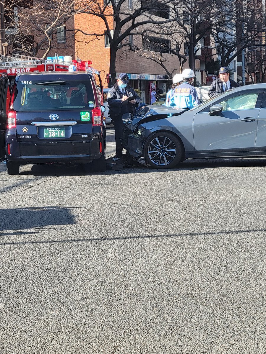 天現寺交差点のど真ん中でタクシーと軽自動車の事故起きてた🚗💨