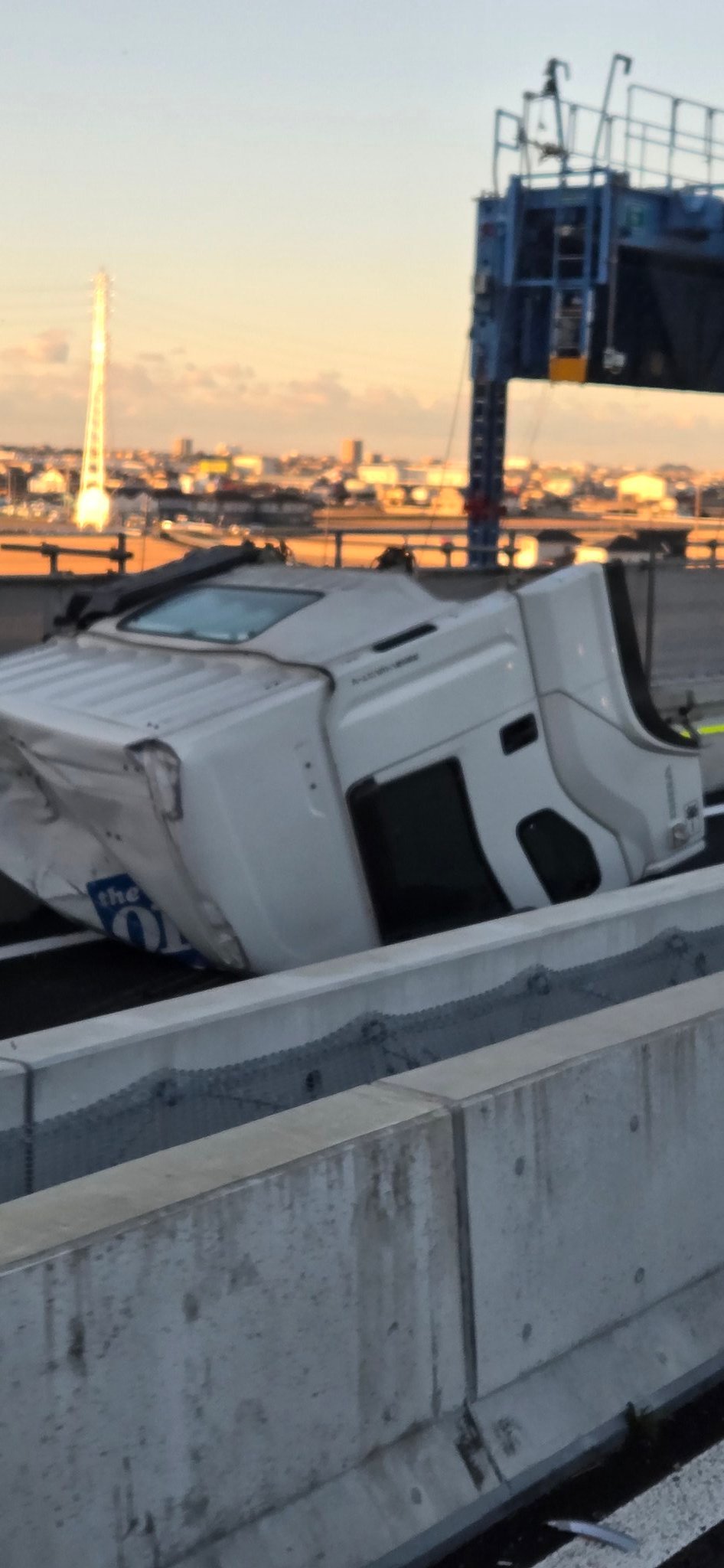 『これはやばいやろ! キャビン数十メートル先に転がってるけど運転手やばない? 東名の袋井手前の分岐いつかやるやろなと思ったら』
