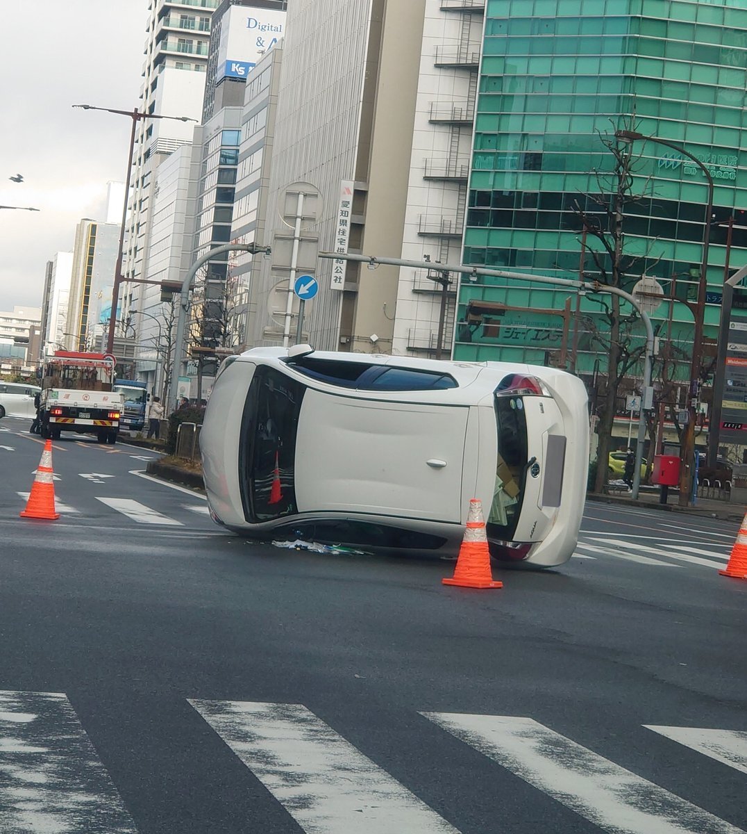 名古屋 事故ヤバすぎ。1枚目の時写真撮ってた時は気づかんやったけど…