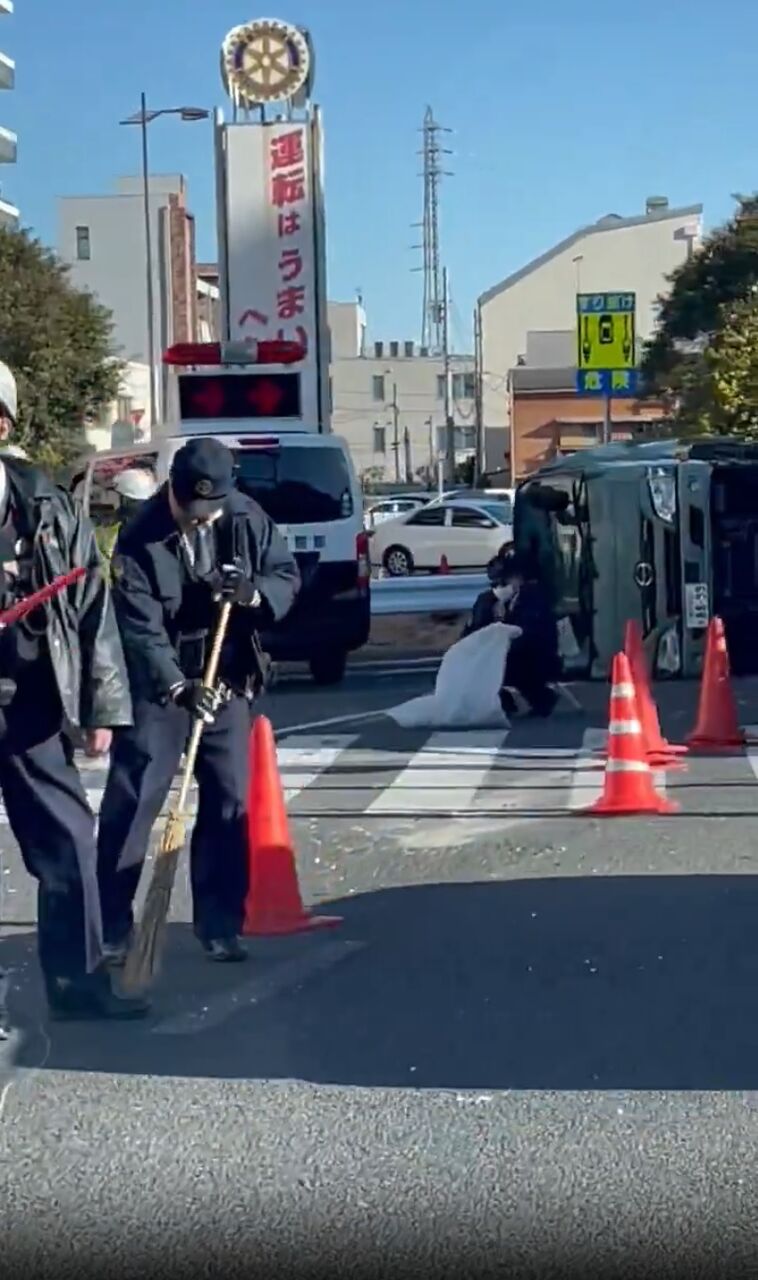 【現場の様子】#交通情報 #国道15号 上り 横浜市鶴見区鶴見警察署前交差点付近タクシーとゴミ収集車の衝突横転事故で規制渋滞1月13日 #横浜 #鶴見 #三連休 #祝日