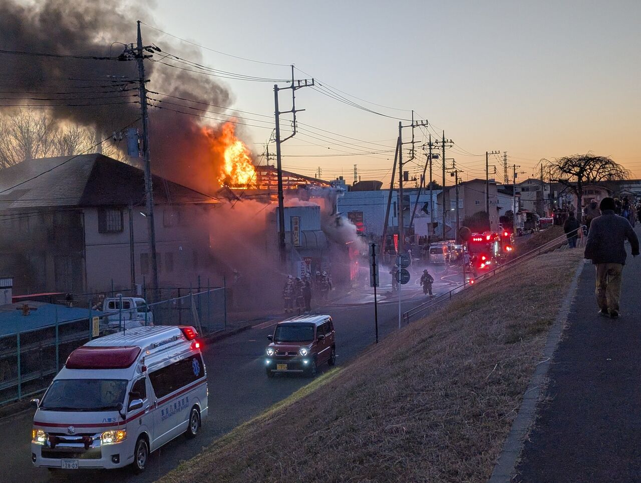 【火事情報】埼玉県八潮市木曽根 中川やしおフラワーパーク沿い付近 建物から火の手あがる火災1月13日 #埼玉 #八潮 #火災