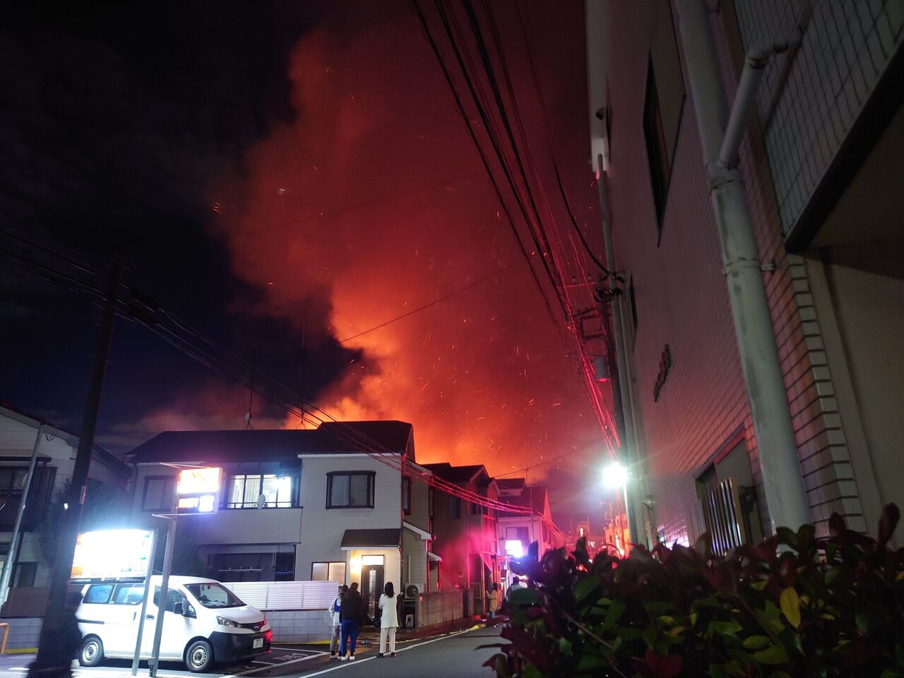 サイレンの音で目が覚めて外に出たら火事・・・。