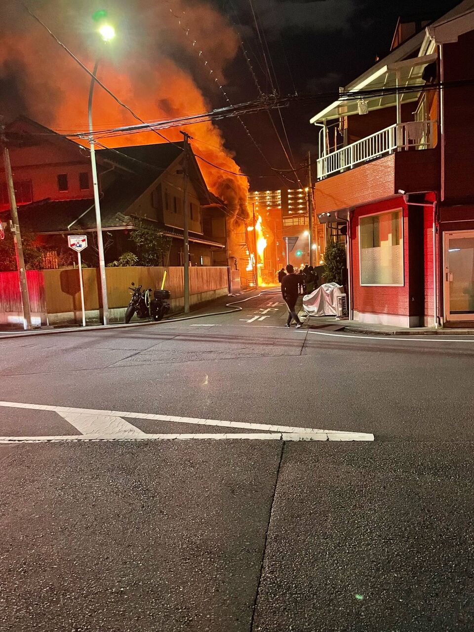 【火事情報】神奈川県川崎市川崎区田町1丁目 #京急大師線 大師橋駅南東付近 住宅街集合住宅アパート建物から火の手あがる火災 アパート2棟全焼男女4人やけど1月16日 #川崎 #大師橋 #火災