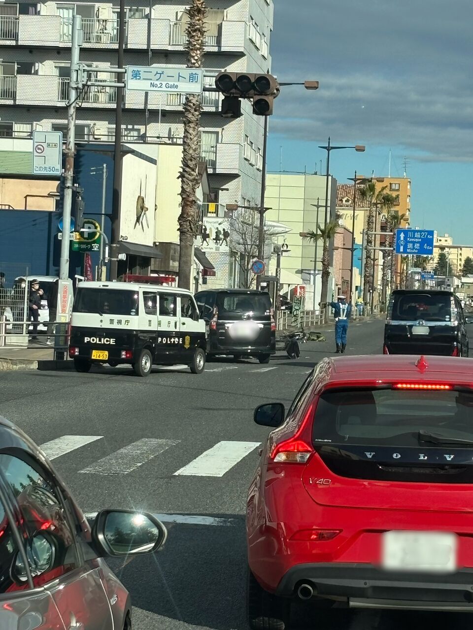 【現場の様子】#交通情報 #国道16号 外回り 東京都福生市福生 横田基地第二ゲート前交差点付近 乗用車とバイク衝突大破事故で規制渋滞1月16日 #渋滞 #福生 #横田基地 #バイク