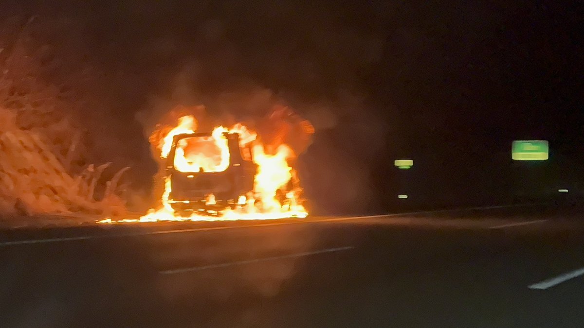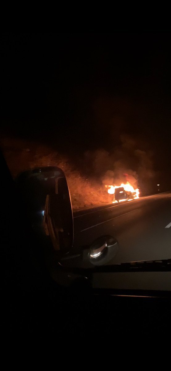 車両がメラメラ燃えてました🔥😨消防警察到着がまだでしたがこの後通行規制入ると思われますので、こっち方面から釣りフェス等行かれる方は注意を〜
