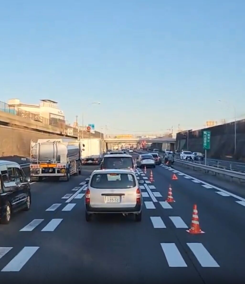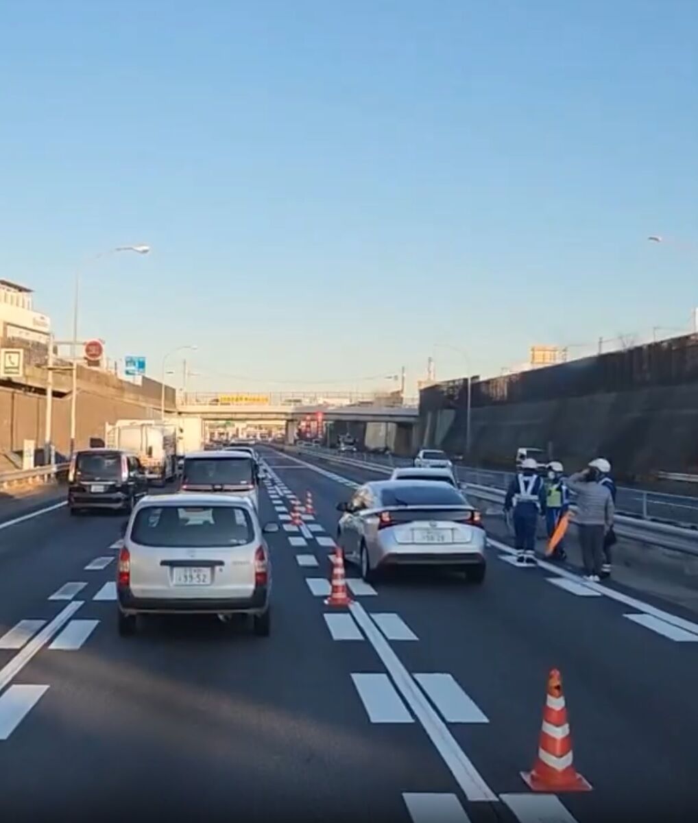 【現場の様子】#交通情報 #東北道 下り 浦和料金所付近 プリウスと乗用車追突事故で規制渋滞1月18日 #渋滞 #埼玉 #浦和