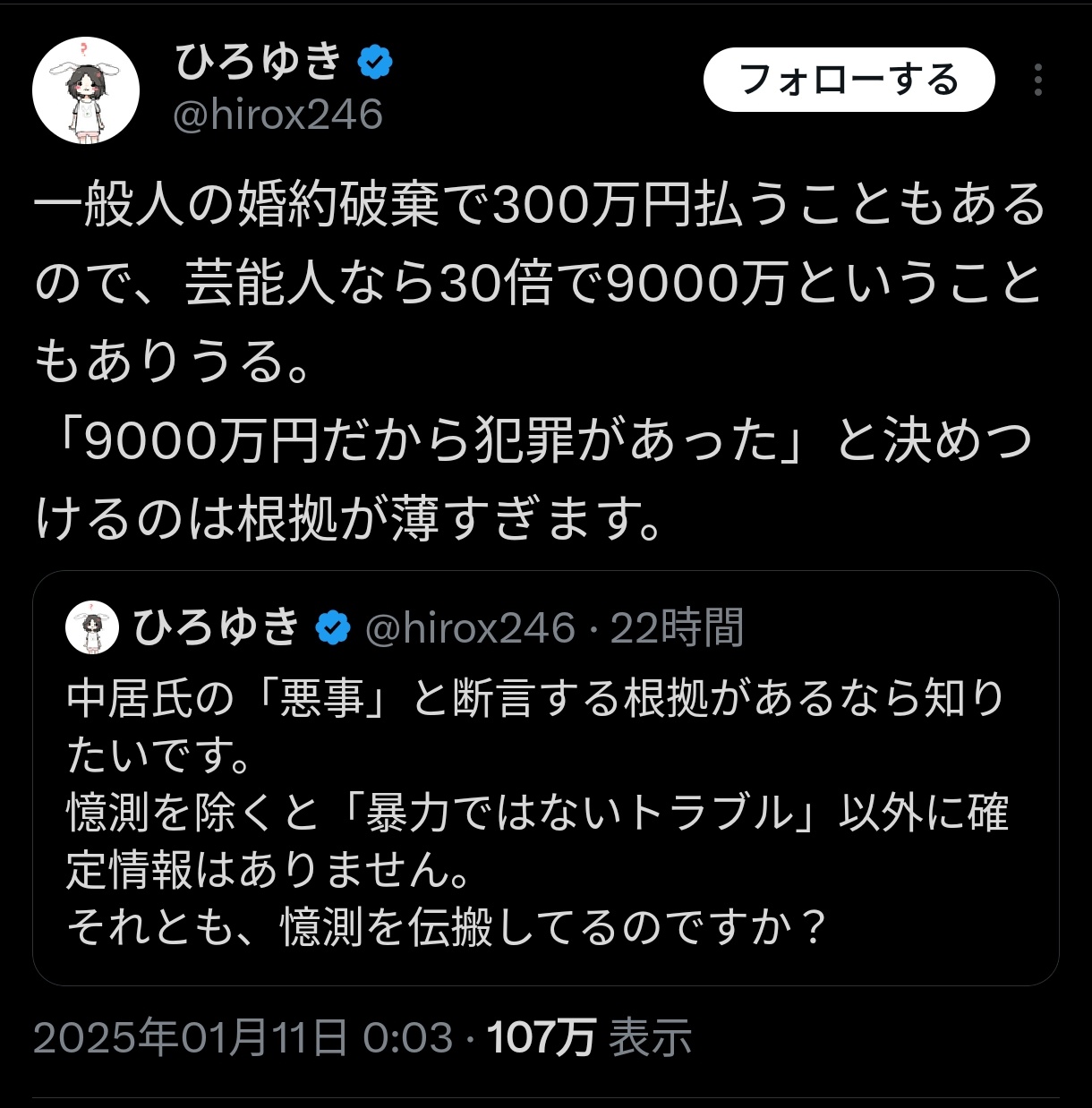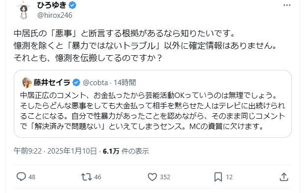 日テレ関係者「中居は示談金9000万円については『結婚に関するトラブル』だと匂わせていた。我々は中居に騙された!」