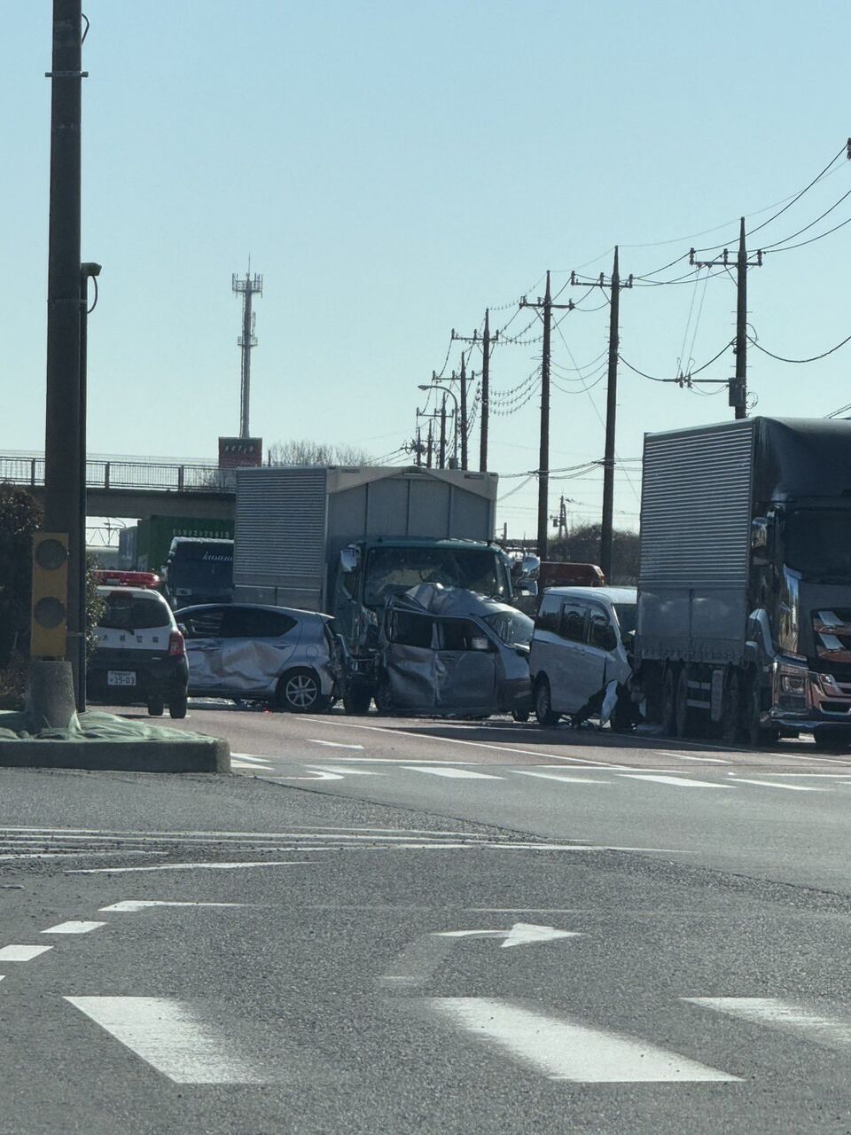 【現場の様子】#交通情報 #国道4号 新4バイパス 栃木県河内郡上三川町上蒲生ガソリンスタンド付近 大型トラックや乗用車など複数台絡む多重事故で規制渋滞1月18日 #渋滞 #栃木 #上三川町