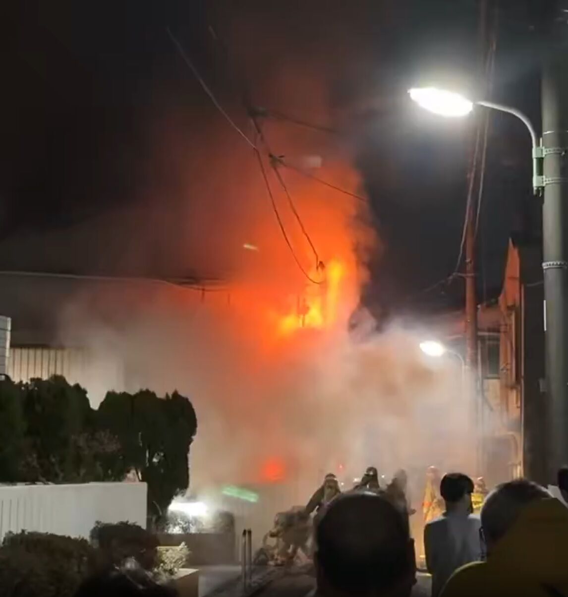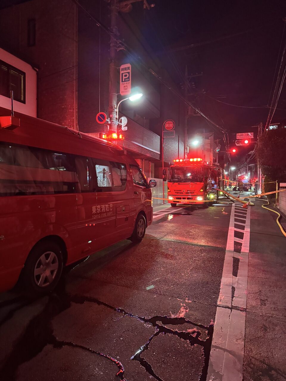【火事情報】東京都品川区西大井5丁目 #横須賀線 西大井駅西側伊藤博文公墓所付近 集合住宅建物から火の手あがる火災1月18日 #品川区 #西大井 #火災