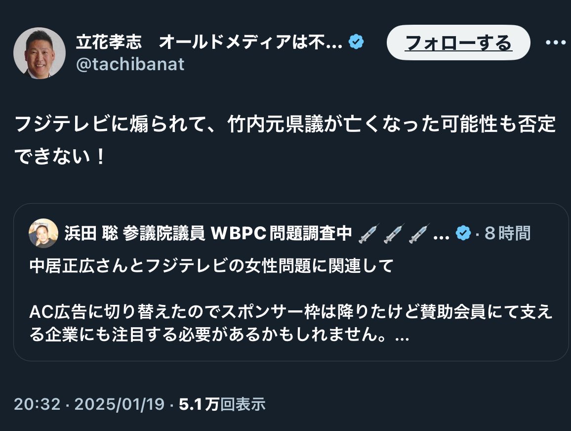 立花孝志氏「逮捕が怖くて命絶った」と投稿も兵庫県警は完全否定 竹内元兵庫県議の死亡