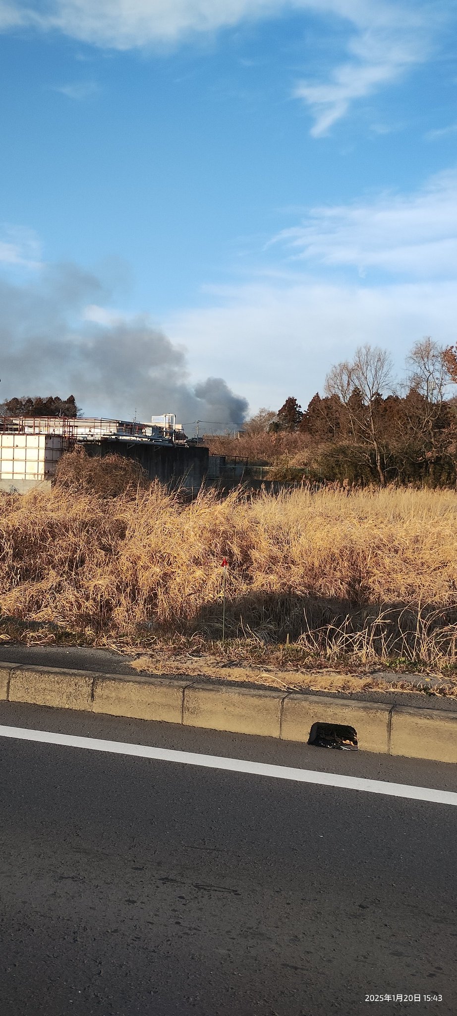 【火事情報】茨城県坂東市矢作 結城坂東線県道20号沿い歩道橋付近 建物から黒煙あがる火災 周辺道路一時通行止め渋滞1月20日 #通行止 #茨城 #坂東 #火災 #交通情報