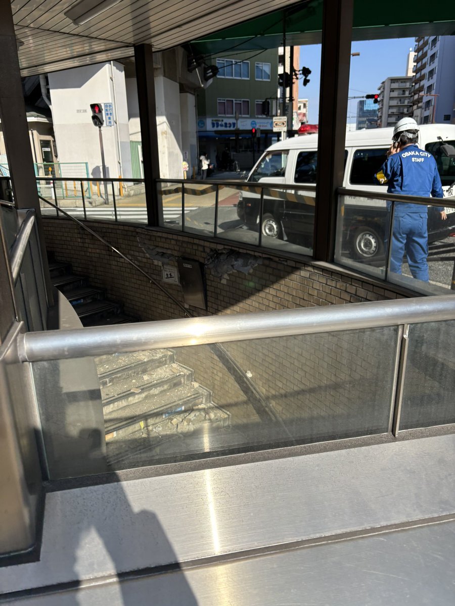 【現場の様子】#交通情報 大阪府大阪市東成区 #大阪メトロ中央線 深江橋駅5号出入口にトラック接触事故 出一口一時閉鎖1月21日 #大阪 #深江橋 #大阪メトロ #地下鉄